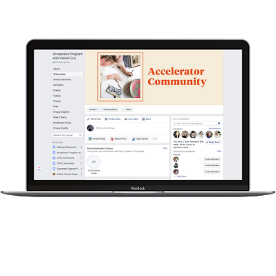 Get coaching and get your questions answered by Mariah directly in these weekly exclusive Group Coaching Calls only available to Accelerator clients. Bring your questions or struggles and we will strategize, talk mindset, and overcome any challenges you are experiencing.